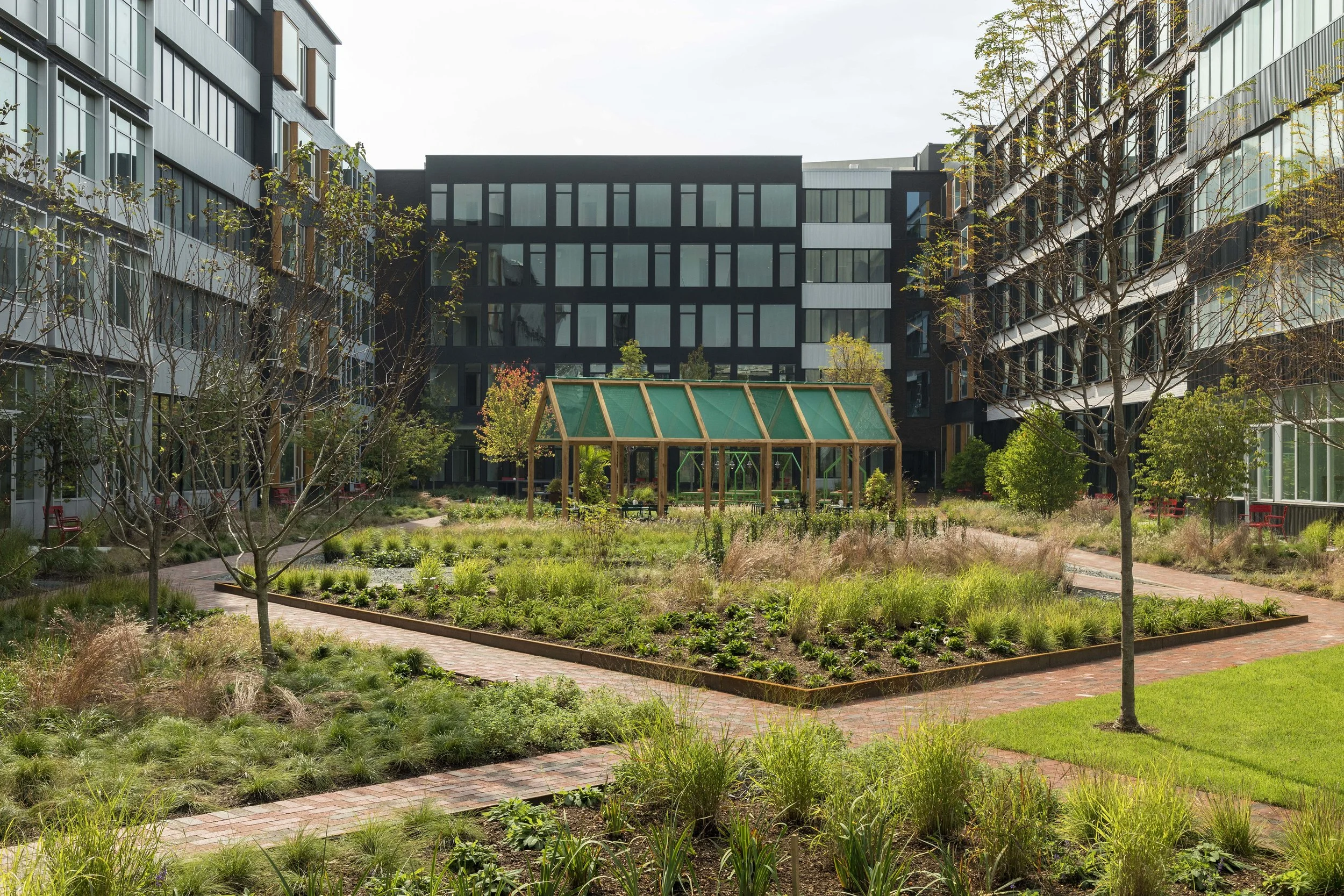 Harrison Urby’s architecture and interiors are designed by Amsterdam-based firm Concrete, best known for the designs of citizenM Hotels around the world. Paying homage to the neighborhood’s industrial heritage, Urby’s façade is inspired from the design of iron bridges. Comprised of a series of buildings, beautifully landscaped geometric green spaces connect each one and form a network of courtyards together at the heart of the complex.